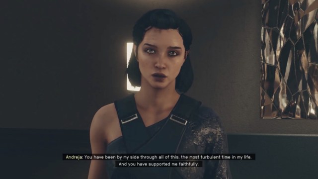 As soon as the Divided Loyalties quest begins, you can work your way through each mission section. when faced with dialogue options and choices, remember to keep in line with Andreja’s likes and dislikes we showed you before. Be supportive and fair, and interested in learning about Andreja’s past.