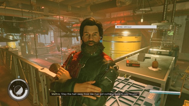 When you get to the end of the quest, you’ll speak with Delgado over the intercom and he asks you whether Mathis was any help on the search. Your decision at this point will determine how your relationship with Mathis turns out. Two dialogue options await you: