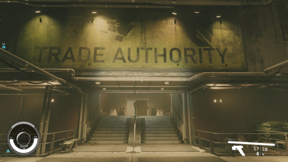 - Location: While there is a kiosk for it right by the Space Port when you first land, the main hub for Trade Authority is down in the Well. Take a hard right from Kay’s House, before UC Surplus and walk down the pathway and the giant ‘Trade Authority’ sign will be right in front of you.