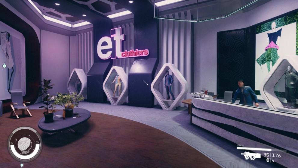 - What It Sells: A clothing store that specializes in the latest space-chic apparel. There’s a good assortment that gives various +O2 and Persuasion buffs.