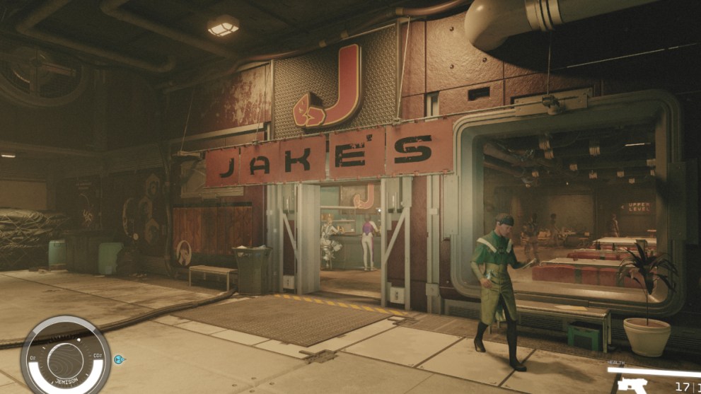 - What It Sells: Jake’s Bar is basically the underground twin to The Viewport topside, where you can order drinks and meet possible recruits for your ship crew. While most are cheaper to higher than those at Viewport, they usually only have one skill speciality. Also, Jake himself behind the bar isn’t the friendliest of folk, so beware.