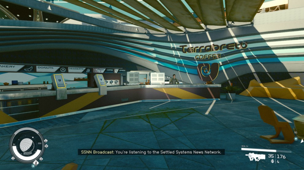 - What It Sells: As one can guess, Terrabrew is essentially the Starbucks of Starfield, and specializes in all different kinds of coffee drinks that can provide a small bit of health and various temporary buffs.