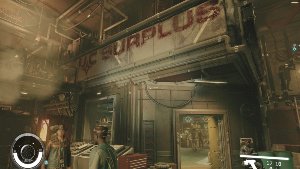 - What It Sells: Quite similar to the UC Distribution Center up top, the UC Surplus sells a fair variety of items, from weapons to gear to a small bit of aid. You can also pick up quirky sidequest “The Boot” from the vendor, if you want.