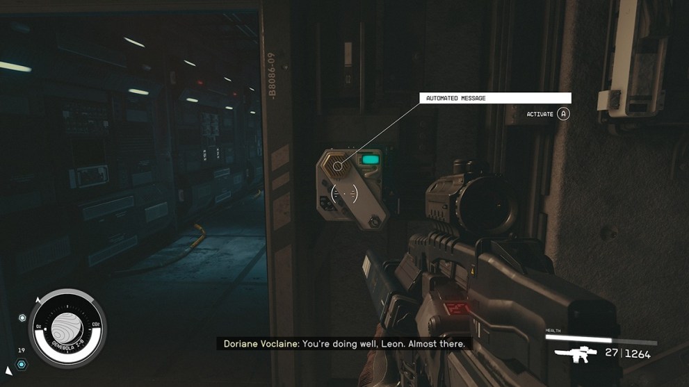 A little way inside, an objective marker will guide you to an automated message on the wall that will be addressed to a mysterious Leon.