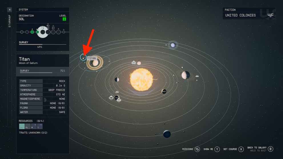 From here, zero in on Titan, which is one of the moons that orbits Saturn (as highlighted below).