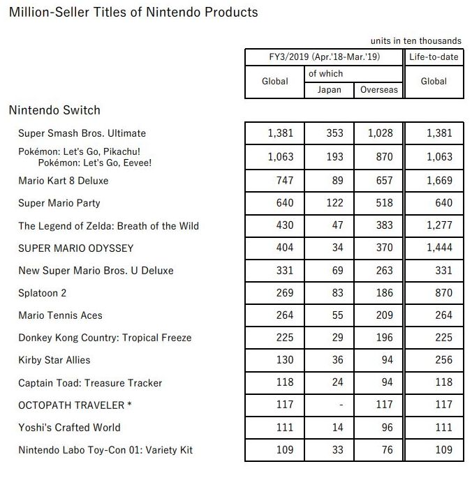 Today Nintendo revealed its financial results for the fiscal year ended on March 31, 2019.