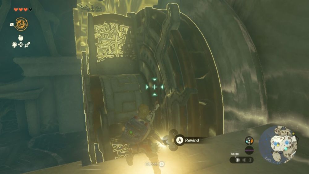First you’ll need to use your Ascent ability to get on top of the platforms and following with your new Recall ability to rewind the circular wheel platforms and reach the top of the path, just as you did in your practice at the Temple of Time.