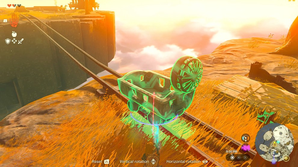 After you put the cart on the track, you can place the Korok inside the vehicle using Ultrahand. To activate the machine, you simply need to hit it once. Don’t worry about hurting the creature since the game won’t allow you to harm any Korok.