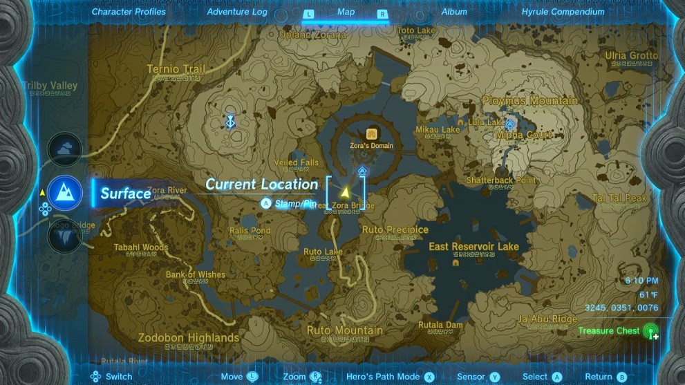 To obtain the treasure, you must find the Cave Under Zora’s Domain located beneath the city. You can discover the entrance by passing through a large waterfall underneath the Great Zora Bridge. Remember to unequip your Zora armor set, or Link will climb up the waterfall automatically.