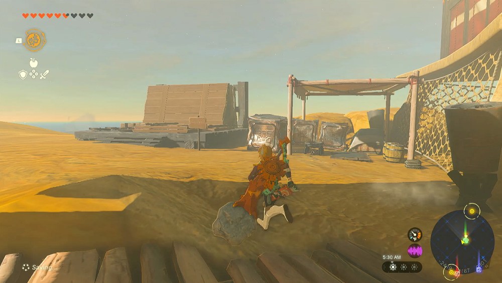 The Gerudo Canyon Skyview Tower will be broken when you first arrive at the structure. Since Link is not a technician, you must find a person who has the skill set to repair the terminal. Luckily, one is already nearby, but he’s stuck at the bottom of the cliff and can’t reach the tower.