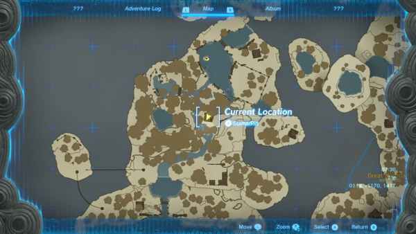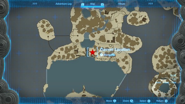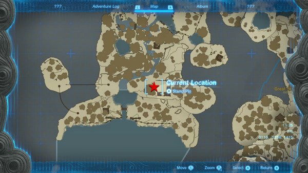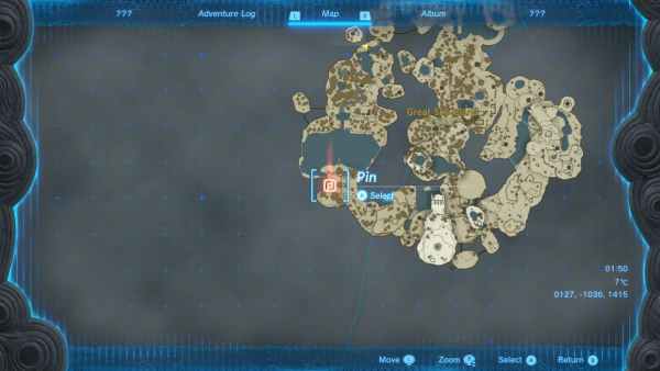 For the next step in this quest, players will need to make their way across the Great Sky Island to another Shrine. Stand on the top of the cliff where the door to Ukouh Shrine is and look south. You can then press the right thumbstick to activate the telescope. Look for the glowing Shrine and then place a pin on it. You can see the location you are trying to get to marked on the map above. Now, we just need to get there.